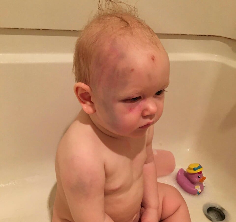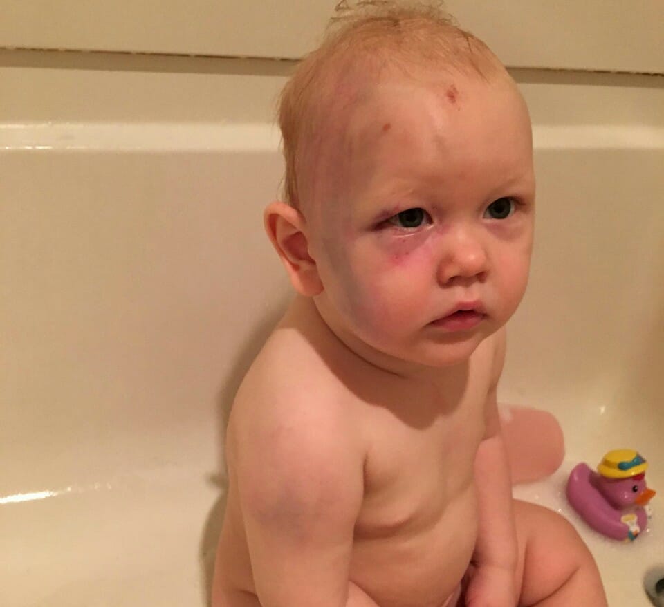Dagen efter upptäckte föräldrarna att Jacobs ansikte var fullt av blåmärken. Deras lille pojke hade blivit slagen av barnvakten, enligt föräldrarna.