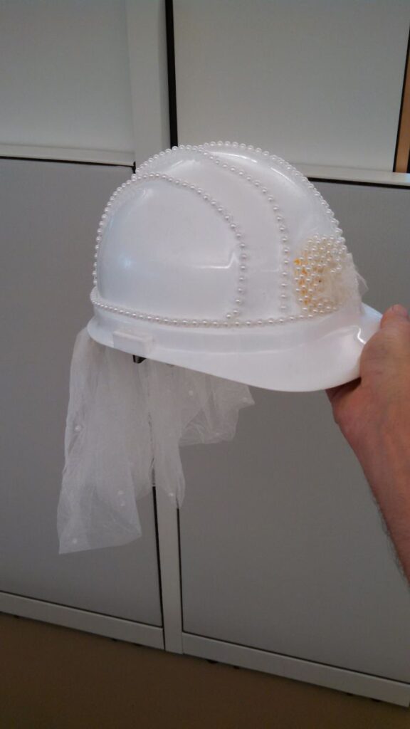 9. ”Vår projektledare på jobbet ska gifta sig, så vi passade på att dekorera hennes hjälm. Hoppas hon gifter sig i den!”