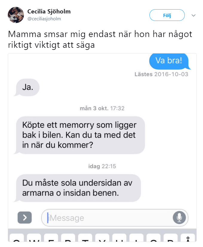 9. ”Man vet aldrig vad som väntar när mamma smsar”