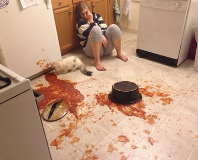 9. Så mycket slit helt i onödan. Den enda som verkar ytterst tacksam över det hela är katten.