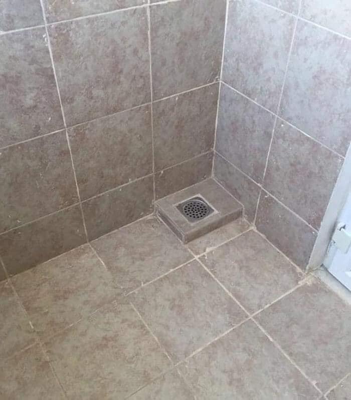 För vem älskar egentligen inte ett helt badrum prytt i småstenar? Eller ett stort arsle som handfat? Eller varför inte en dusch i trappan? Kreativiteten är hög åtminstone!