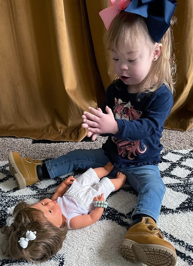 Dockan gjordes för att likna den tvååriga flickan med Downs syndrom. Och gissa om hon var glad för det!
