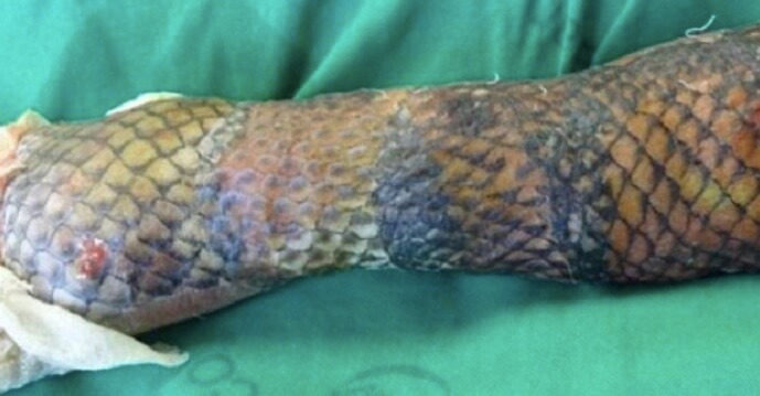 Läkarnas förslag var att hon skulle få fiskfjäll på sina armar. Om hon fick detta så skulle hennes brännskador läka betydligt fortare.
