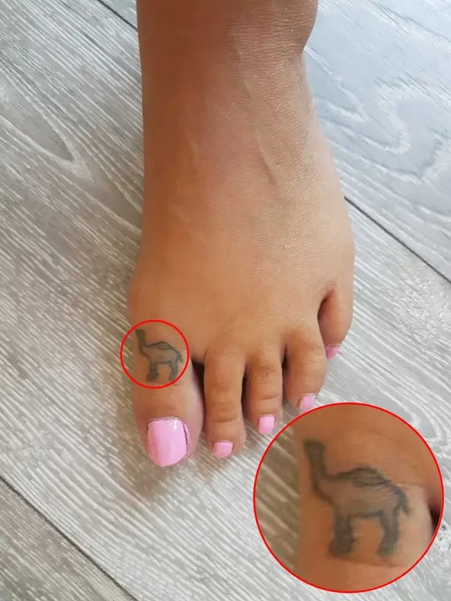 Förutom kamelen på tån har mamman även en annan absurd tatuering.