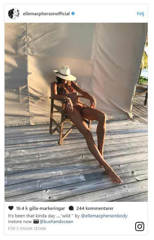 Men det är en bild som hennes följare har uppmärksammat lite mer som fått dom att häpna. I den här bilden så halvligger Elle Macpherson i en solstol. Hon är klädd i enbart bikini och en stor härlig solhatt.