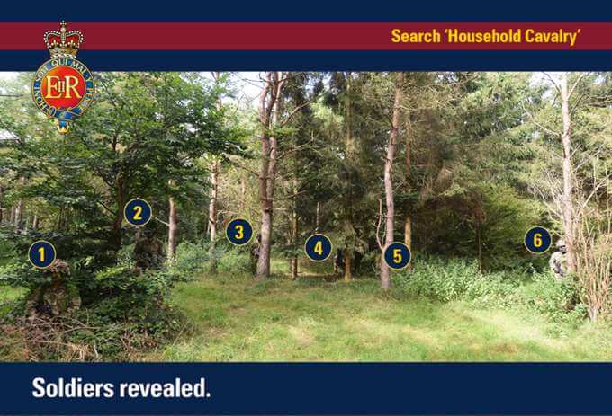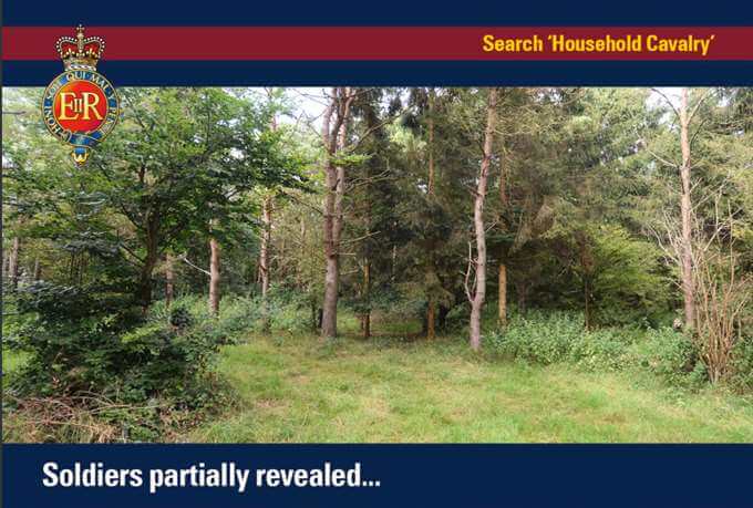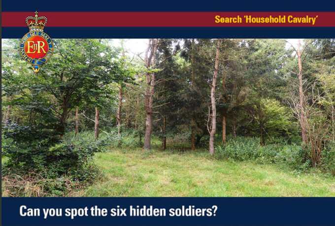 ”Kan du hitta sex av våra kamouflerade soldater i skogen? Allt kommer att avslöjas på annandagen.