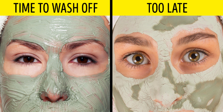 Samma sak gäller för ansiktsmasker av lera – de ska appliceras i ett tjockt lager för att fukten ska avdunsta långsammare. Ta bort dem medan de fortfarande är klibbiga.