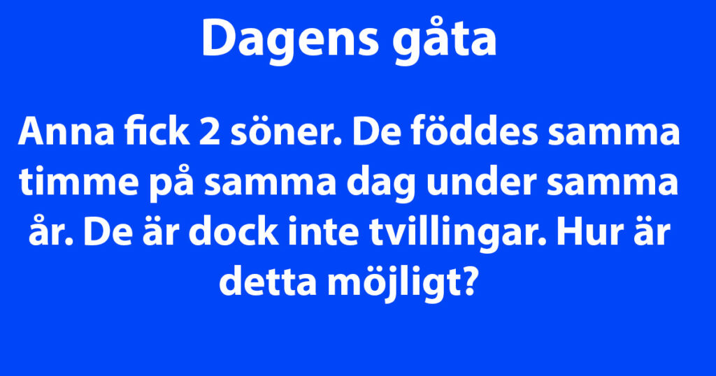 Anna fick 2 söner. De föddes samma timme på samma dag under samma år. De är dock inte tvillingar. Hur är detta möjligt?