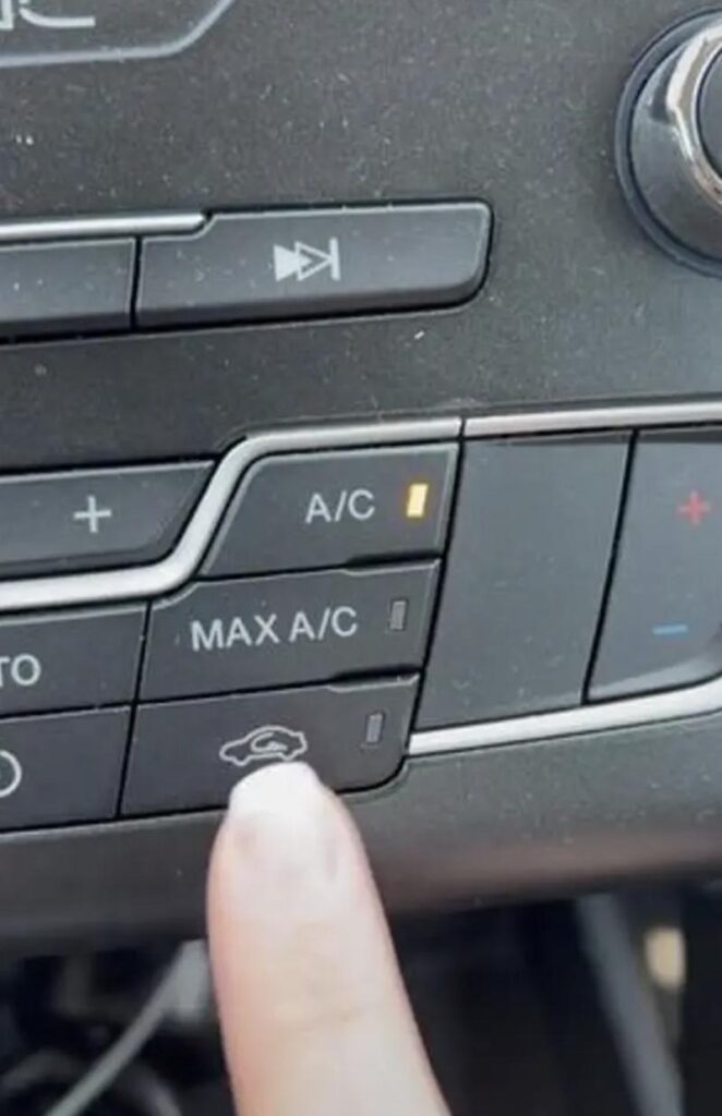 I videon kan du se henne använda ”luftcirkulationsknappen” – den med en pil inne i en bil.