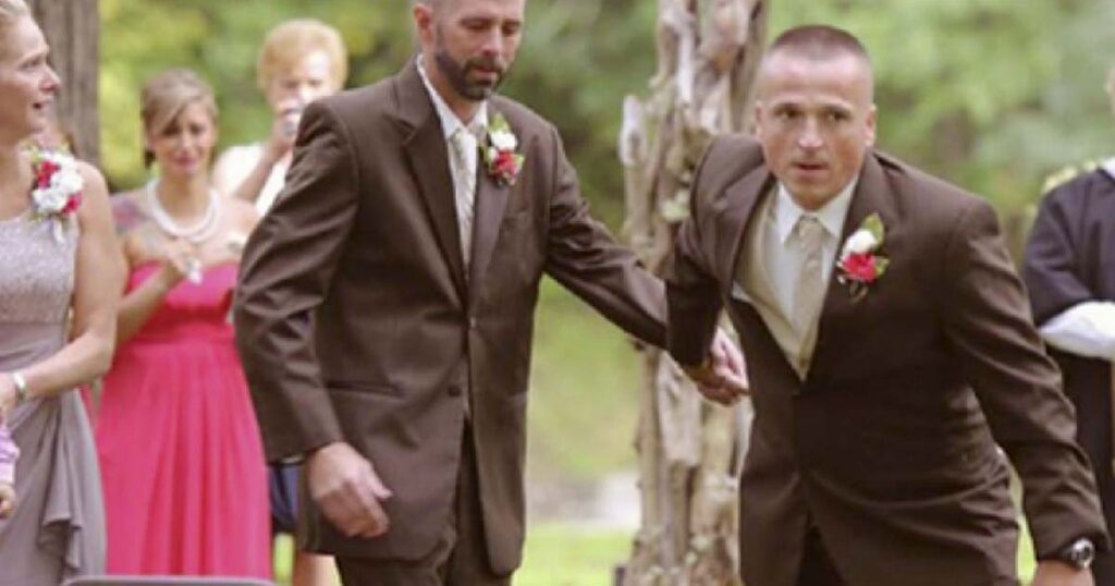 Todd Backman, brudens far, gick med sin dotter i den lilla gången de skulle gå ner så att hon kunde gifta sig.