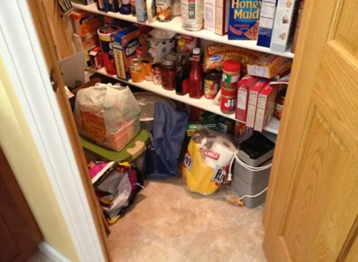 På bilden nedan är det en katt som har gömt sig och som inte är lätt att hitta vid första anblicken i det fullsatta matståndet. Kan du hitta katten på bilden?