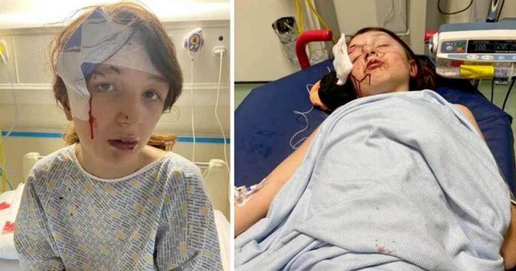 Abbie slogs flera gånger i ansiktet, hon slogs till marken och hon sparkades flera gånger i huvudet och var helt täckt av blod.