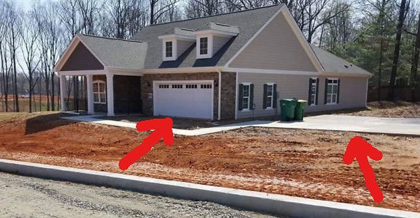 De smarta byggnadsingenjörerna har helt enkelt lagt vägen till garaget på fel sida av huset. Hur man lyckas göra en så grov miss är svårt att förstå.