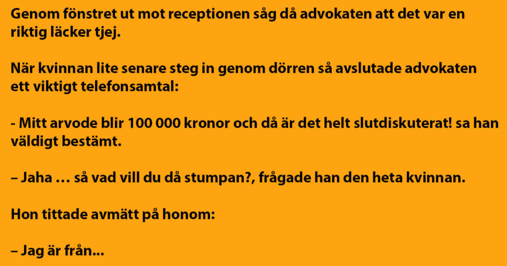 Sedan lade advokaten nöjt på luren, vände sig mot den vackra besökaren – och sade överlägset: