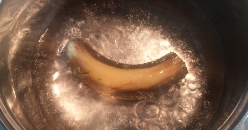 Gå och köp ekologiska bananer, skär av ändarna och koka i 10 minuter. Det är viktigt att du använder ekologiska bananer så att du inte får i dig farliga kemikalier. För bättre smak kan du lägga till en tesked kanel.