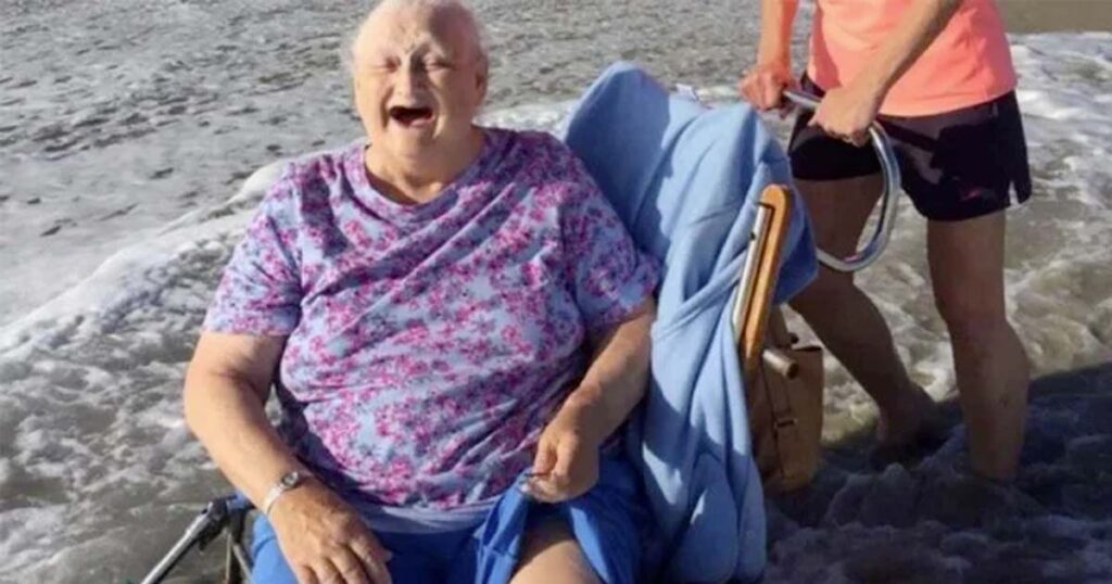 Det var en begäran som hennes familj fick äran att bevilja. En bild tas när mormodern körs i rullstol ut i Stilla havet vid Laguna Beach i Kalifornien i USA, som senare delades på sociala medier och som berör hela världen.