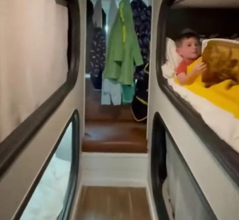 Föräldrarna har också ett helt eget sovrum med en stor dubbelsäng och alla barn har varsitt litet rum som är gjort till ett slags våningssängsystem.