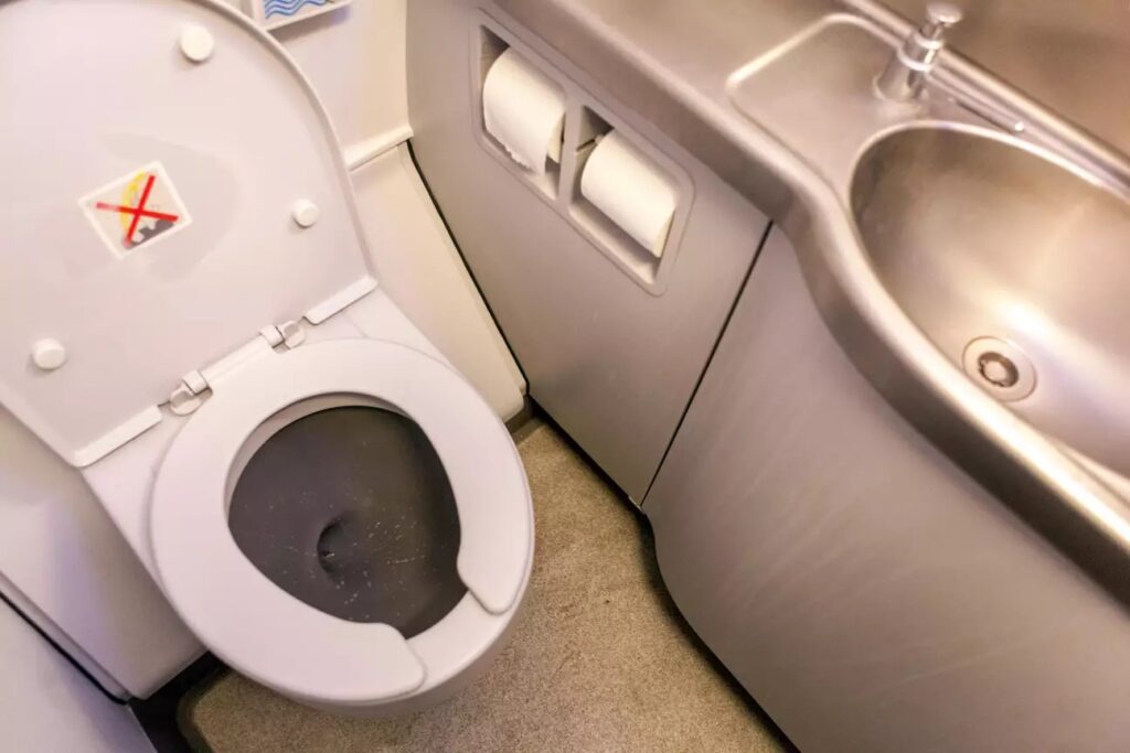 Även om det verkar ologiskt bör du aldrig använda toalettpapper för att torka dig ombord på ett flygplan.