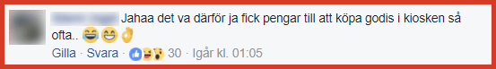 ”Jahaa det var därför jag fick pengar till att köpa godis i kiosken så ofta..”