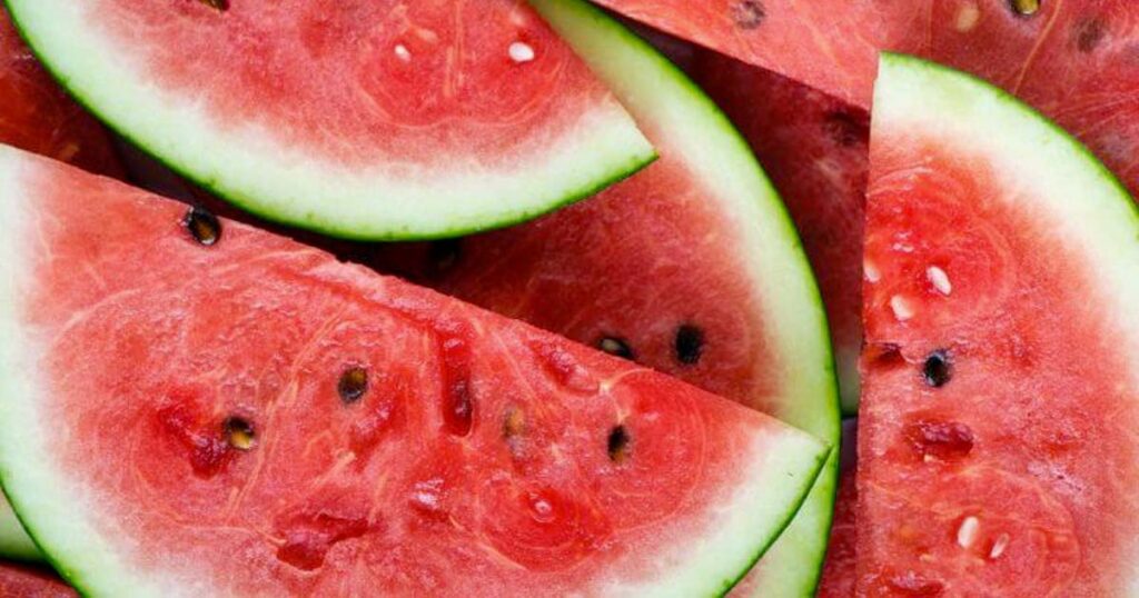 Han tar sedan vattenmelonen och lägger den på pannan, där den grillas väl på båda sidor.