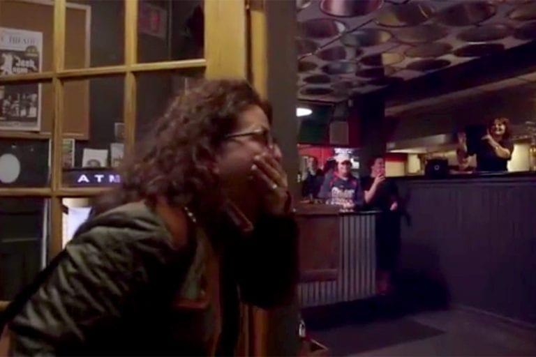 I en tv-inspelning kan man se hur kvinnan har svårt att dölja sin tacksamhet när hon återvänder till restaurangen där döttrarna stod redo att överraska sin mamma.