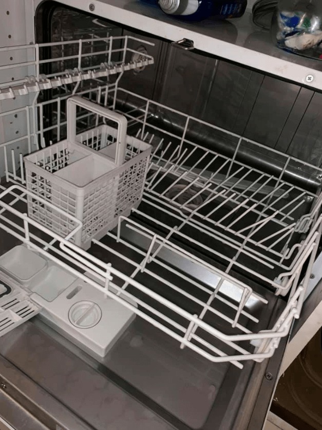 Hon tog bilden på diskmaskinen och la upp den på Facebook, i gruppen ”Husmorstips, gammal som ny” Och hon skrev ” Vet någon hur man tar bort dessa avlagringar i