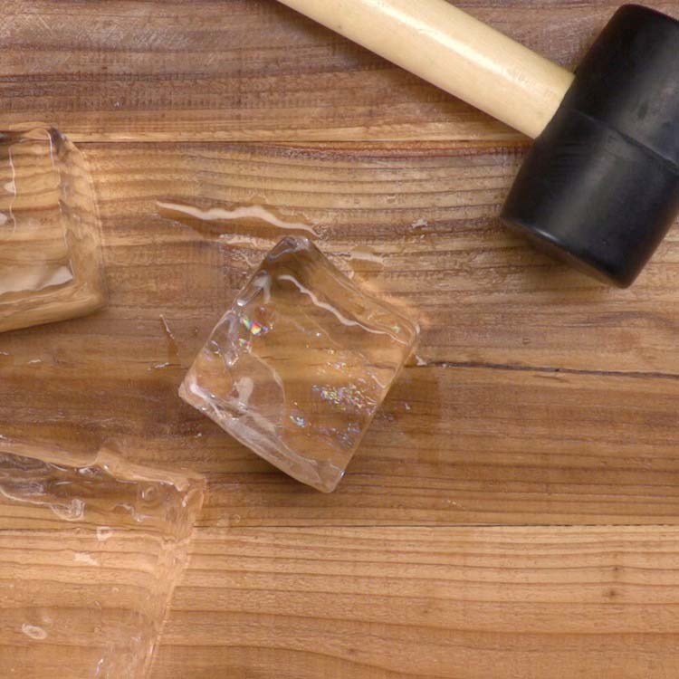 I normal is bildas grumlighet när isen fryser helt och hållet – eftersom allt som pressades ut till slut fastnar i isen när den når slutet av frysningsprocessen. Men när du fryser isen riktat i kylaren och inte låter den frysa helt och hållet (det här är nyckeln) kan du bara flisa bort det delvis frusna lagret av is där allt grumligt skräp hänger kvar. Och voilà – du håller i dina händer ett block av felfri, kristallklar is redo att huggas till kuber av alla storlekar.