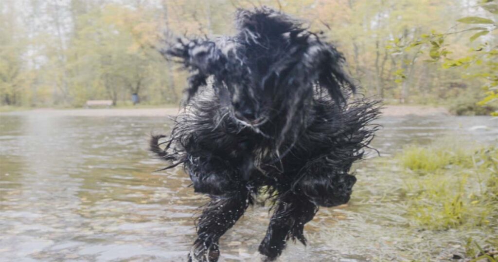 Kuikka var tvungen att ta vackra bilder av sin femåriga hund, Bavian, före och efter att den hade badat i floden Det gick inte riktigt som planerat.