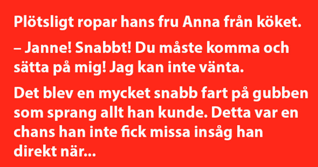 Han sprang till köket och där hade han tillsammans med sin fru passionerat och underbart samlag på bordet. Men när dom var klara, var Janne bara tvungen att fråga följande: