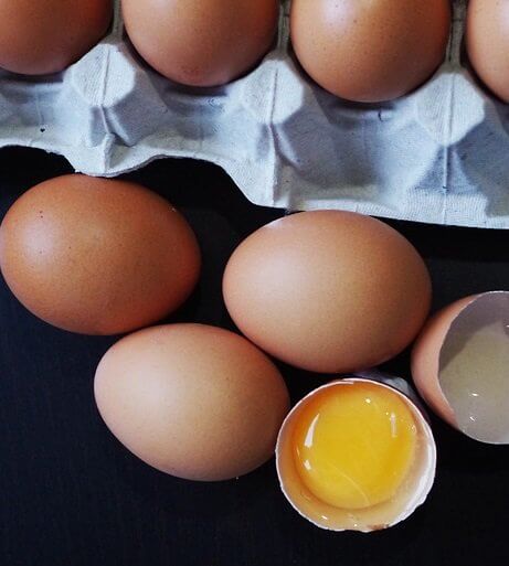 Ägg som ser ut som dessa är från hönor som gått fritt ute på gården, fått en hel del utrymme och även dagsljus. Äggulan är så pass mörk att den gula färgen egentligen är orange. Äggulorna brukar ofta vara mindre än de som vi får när vi handlar i butiker.