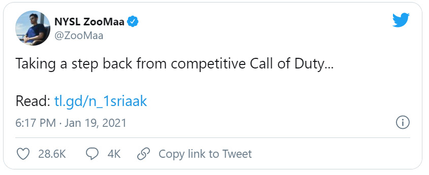 “Att spela igenom den svaghet och smärta jag har haft i handen gör det omöjligt att fortsätta. Jag njuter inte av att tävla när jag inte kan vara den “ZooMaa” som alla känner till och älskar. Det känns orättvist mot mig själv och mitt lag att gå igenom allt det igen och potentiellt skada min hand ännu mer”.