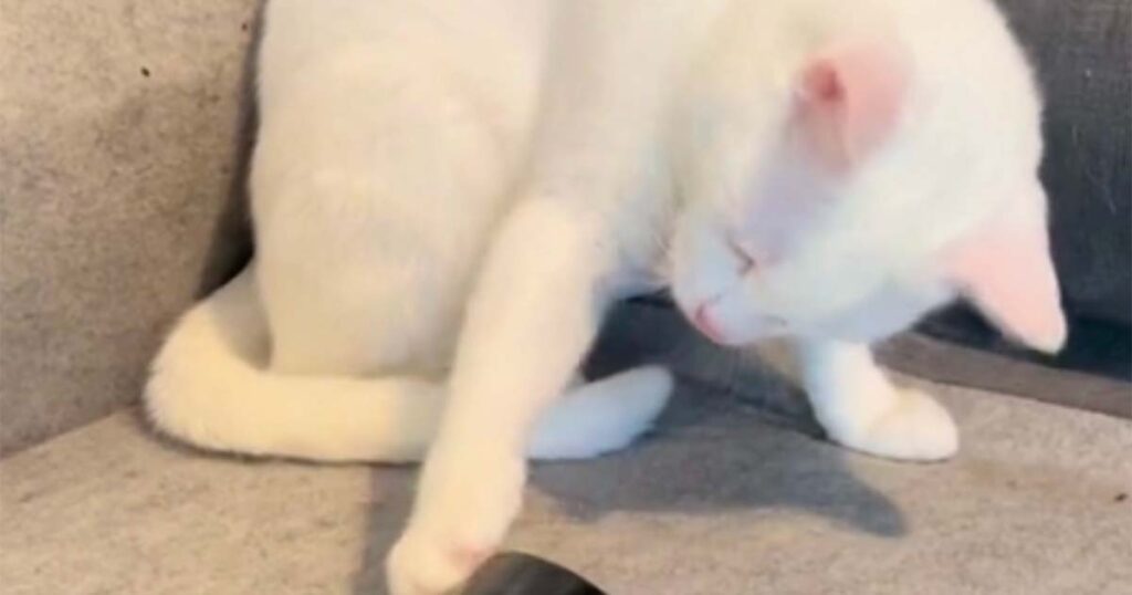 En video på en katt som nyfiket undersöker en dammsugare gör succé på nätet!