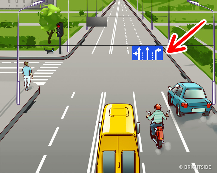 På bilden kan du sen en tecknad väg med bilar, en motorcykel och en fotgängare. Så långt är allt helt normalt, men det finns en liten detalj i bilden som är helt knasig.