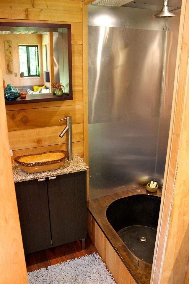 Den hemmabyggda släpvagnen är bara cirka 13 kvadratmeter, men som syns i galleriet nedan är den nästan lyxigt inredd med el, badrum och kök.