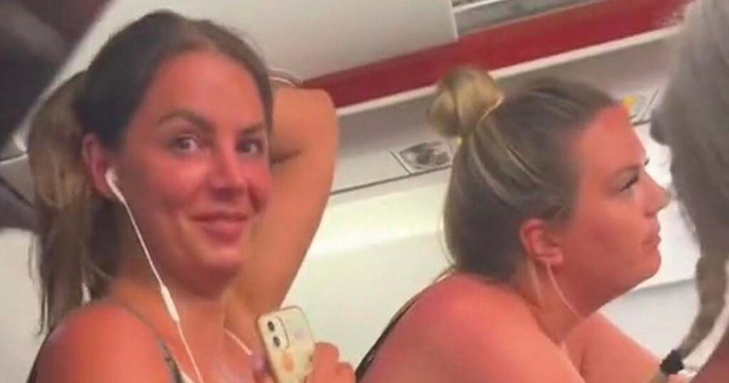 Därefter filmar hon över planets gång, där en grupp kvinnor står och ser lika förvirrade ut över att deras platser på planet inte finns.