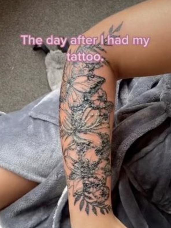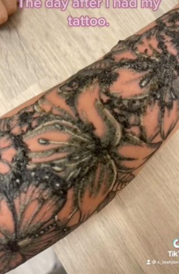 Leahs följare hävdar att hon inte undersökte tatueraren som hon slutade använda efter att hennes nya tatuering visade tecken på infektion inom bara 24 timmar.