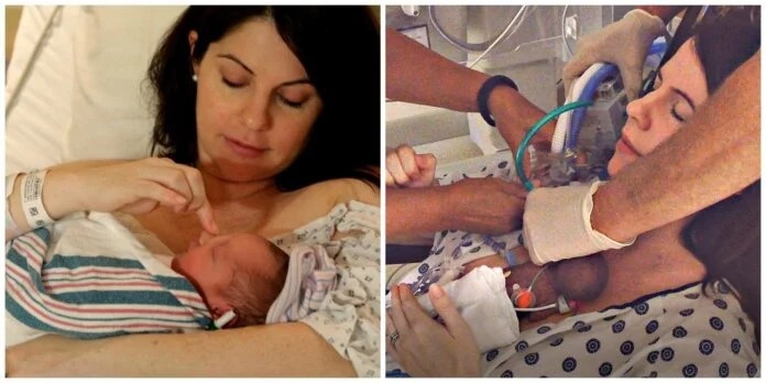 Kort efter fick hon havandeskapsförgiftning, ett högt blodtryckstillstånd som vissa gravida kvinnor får. Och vid den här tiden fanns det också en stor risk för Angelas liv, och hon hade valet att avbryta graviditeten, men hon vägrade.