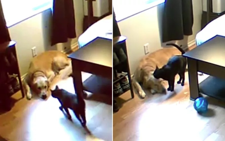 Därför blev ägarna förvånade när de såg bilderna från sin säkerhetskamera. När det kommer till kritan verkar Nova och Simba komma överens.