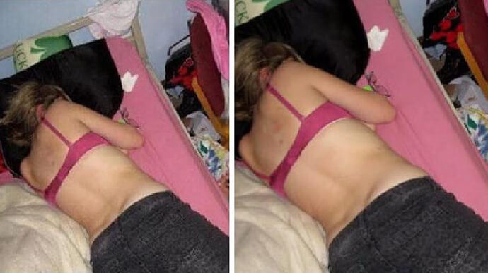 Hittade du detaljen? Om inte, kolla en gång till. Du kommer att se ett ansikte, inte alls stort, titta fram underifrån deras säng.