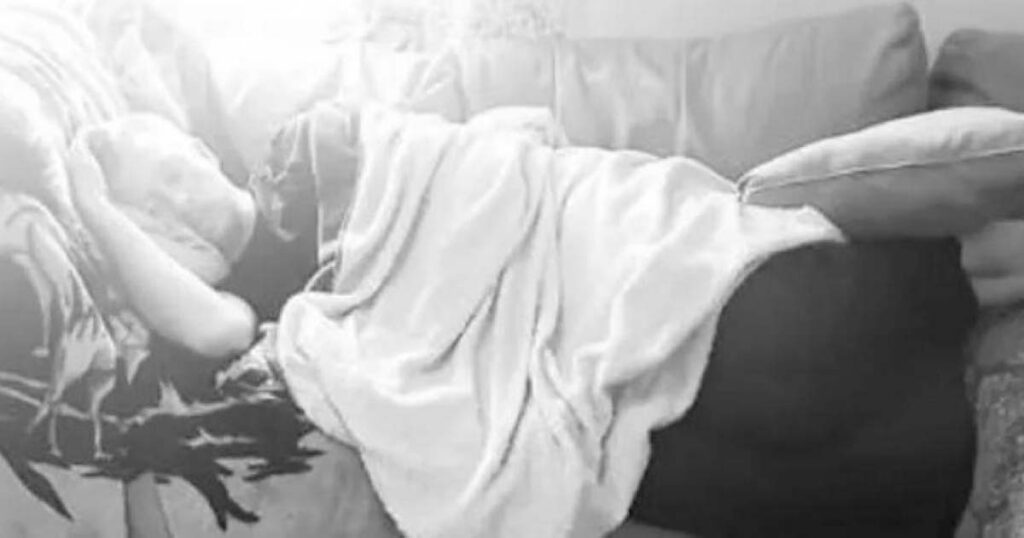 Bilden avslöjar också hur Michael sover i soffan medan hans fyra barn sitter på golvet och ritar honom.