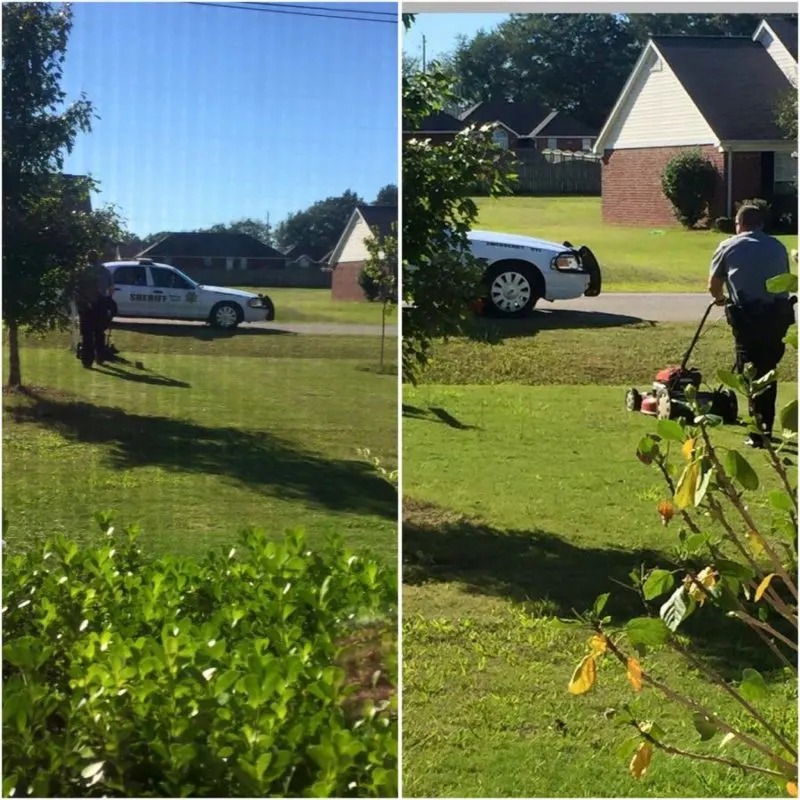 Madison County Sherriff’s Office bekräftade att det rörde sig om en av deras egna sheriffer och lade upp en av Rachels bilder på sitt officiella Twitterkonto med texten: ”MCSO Deputy hjälper en nybliven mamma med en bebis genom att klippa hennes gräsmatta. Det var mer än vad som krävs i tjänsten – hon var mycket tacksam.”