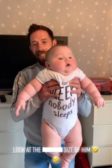 ”Jag har blivit retad tre gånger i dag, allt på grund av min fyra månader gamla sons storlek. Titta så stor han är!”.