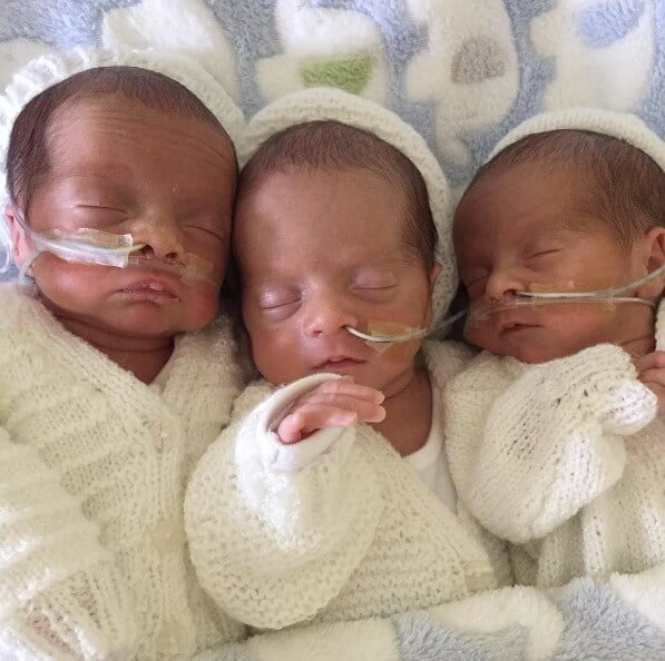 Här är pojkarna Rocco, Roman och Rohan som föddes med kejsarsnitt vid 31 veckor. De fick tillbringa sex veckor på intensivvården. De vägde bara ca 1500 gram styck.