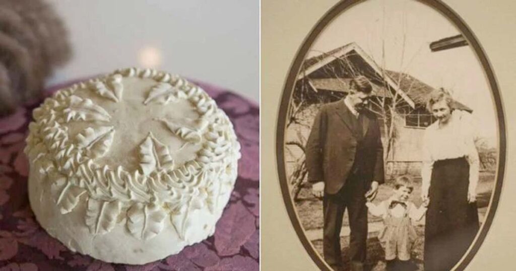 Ronald Warninger, öppnade en hattask och där hittar han bröllopstårtan till farföräldrarnas bröllop 1915. Även om den är stenhård och tydligen ganska spröd framstår det 100 år gamla bakverket som helt intakt.