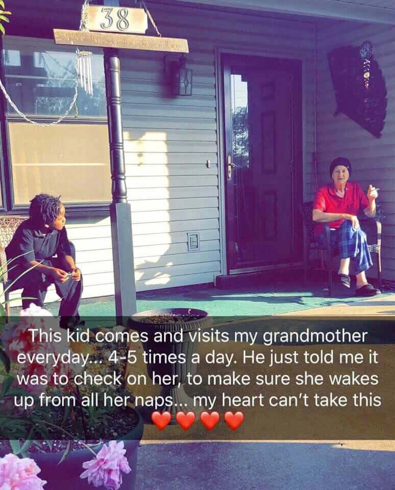 Det är Yahoo News som berättar den vackra historien om Darrien Middleton som kommer för att besöka mormor Wilma Bray medan hon sitter ute på sin veranda i Tennessee, USA. Hon sitter inte ensam, som hennes barnbarn kan ha fruktat: med sig har hon förstklassiga Caleb.