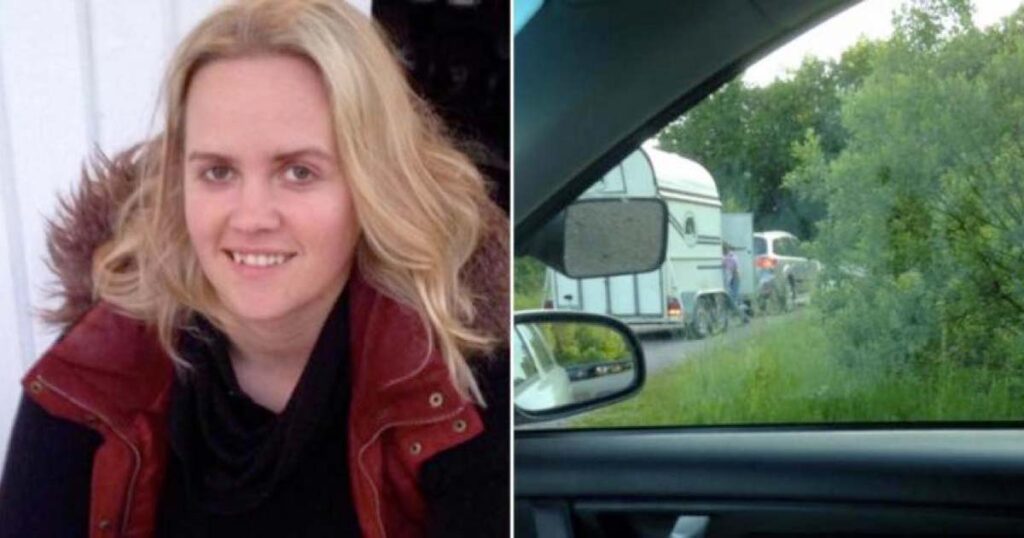 Jenny ringde polisen när hon såg vad som stack upp ur hästsläpet.