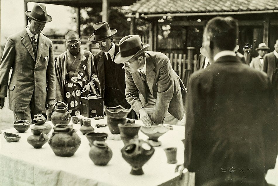 Gustaf VI Adolfs resa i Japan 1926. Utställda antikviteter i Ishiyama. Reprofoto: Alexis Daflos. Foto ur Bernadottebibliotekets arkiv.