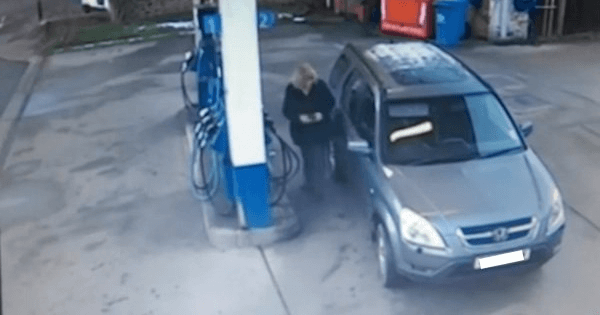 Den här kvinnan har stannat på macken för att tanka. Jag är säker på att du också lyckats gjort det som den här kvinnan gör – hon har glömt vilken sida tanklocket sitter på.