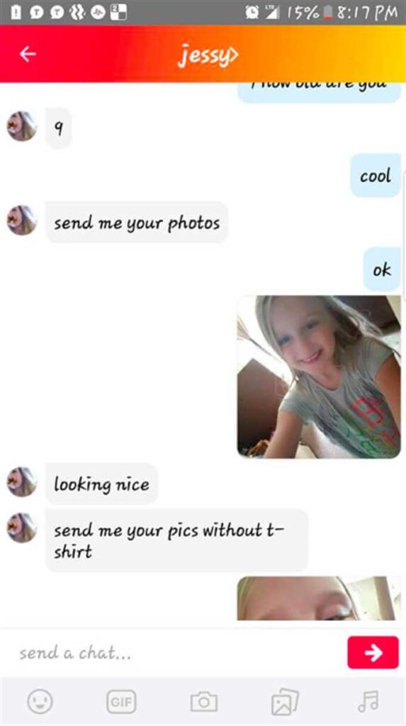 Konversationen inleds och än så länge är det ingenting skumt. Men sedan när konversationen fortsätter uppmanas 7-åringen att skicka bilder utan tröja…