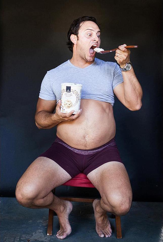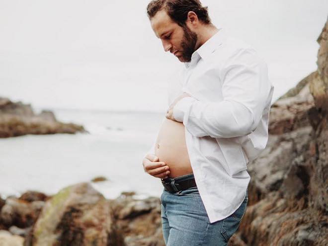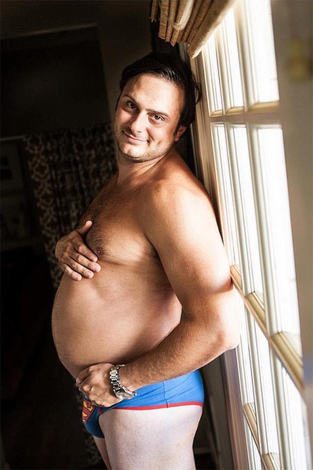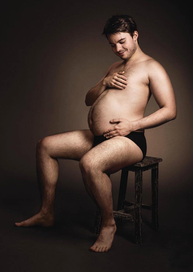 Stolta mammor som visar upp sin gravidlycka med bilder på den växande magen är en väldigt vanlig del av graviditeten. Men hur skulle det se ut om pappor istället återskapade bilderna på sina fruar – och visade upp sina ”vackra” ölmagar?